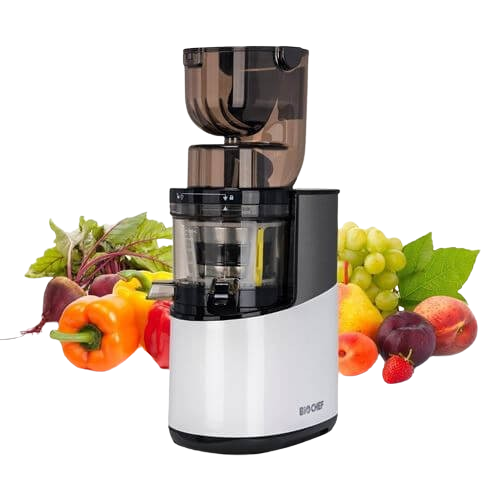 De BioChef sapcentrifuge is een krachtig apparaat met een inductiemotor van 250 watt en een lange rotatiesnelheid van 40 omwentelingen per minuut, wat maximale prestaties onmogelijk maakt zonder de toevoegingen en enzymen in het sap aan te proeven. Het kan tot 60 minuten achter elkaar worden gebruikt en kan per uur maar liefst 40 liter koudgeperste sap produceren. (getest met appels). De sapcentrifuge heeft een brede opening van 8 x 8 cm, waardoor hele groenten en fruit zoals appels en sinaasappels gemakkelijk kunnen worden geperst. Gemaakt van niet-giftig titanium, is het vrij van BPA, BPS, PVC, ftalaten en formaldehyde. Het wordt geleverd met 3 filters: een fijne zeef, een dikke zeef en een filter voor sorbet en ijs.