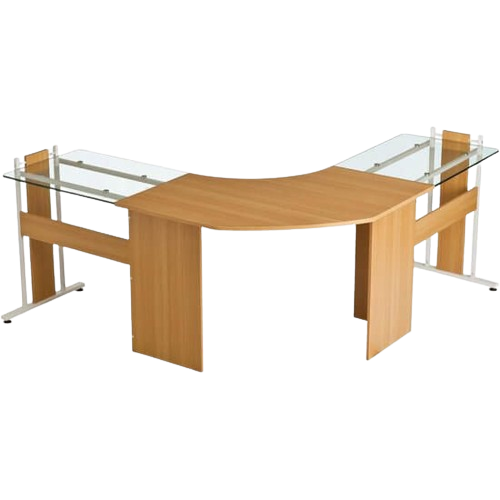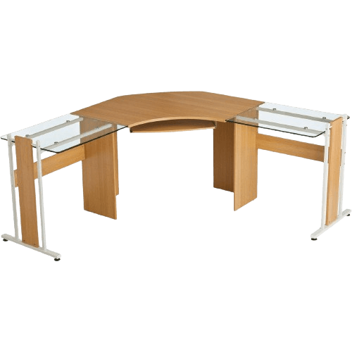 Het Piranha FRIGATE Hoekbureau Eikenhout biedt een ruime, moderne werkplek met hoekwerkvlak van 161,5 cm per zijde, gehard glas en een uitschuifbare toetsenbordlade.