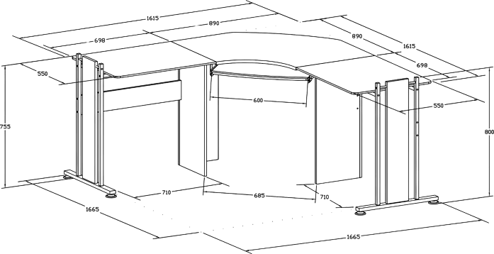 - 161,5 cm per zijde voor meerdere monitoren